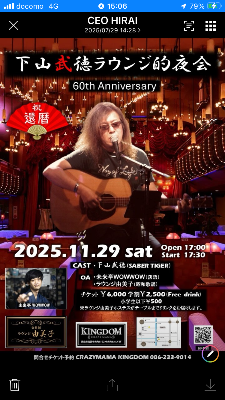 11/29(土)下山武徳的夜会 in 岡山