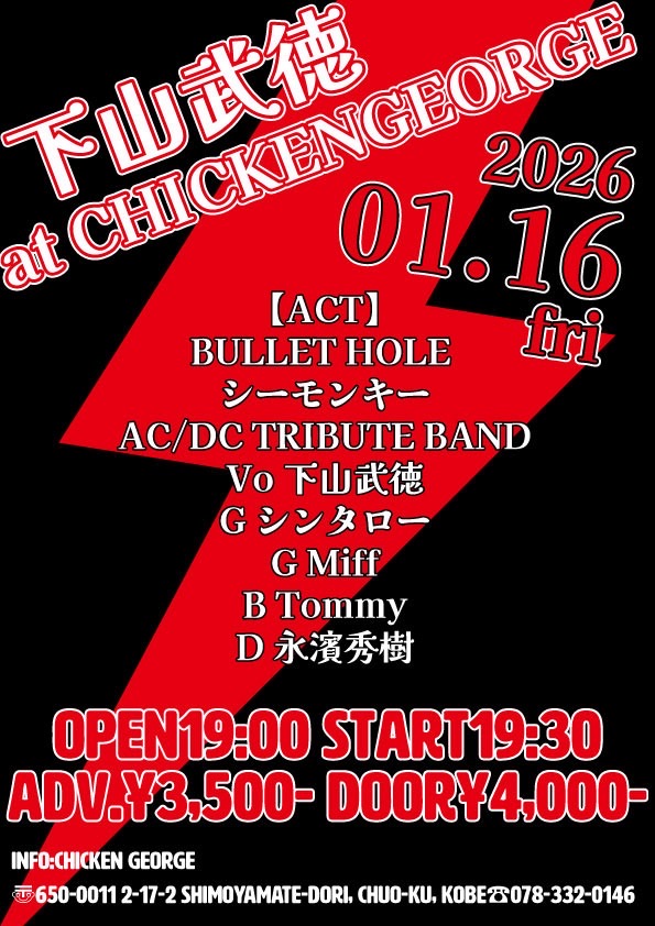 1/16(金)AC/DCトリビュートバンド at 神戸チキンジョージ
